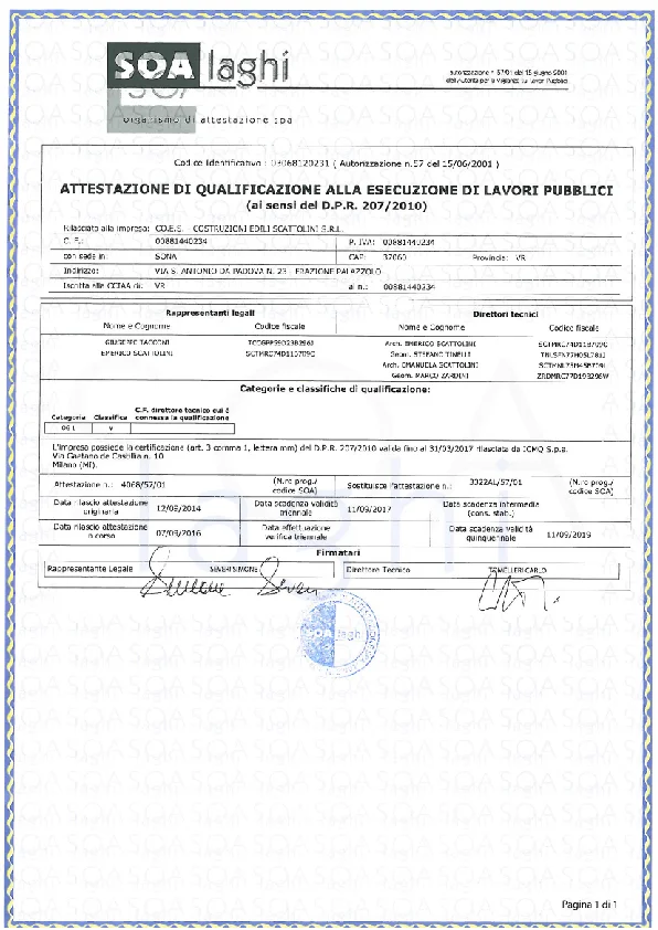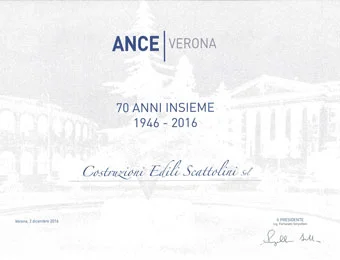 In seguito l’attività si espande con la realizzazione in appalto di lavori per il Consorzio Agrario di Verona, per Enti Pubblici (Sip), Banche (Cariverona e Bpv), Istituti Religiosi e singoli privati. L’attuale assetto societario è del 1979, anno in cui nasce Costruzioni edili Scattolini srl.