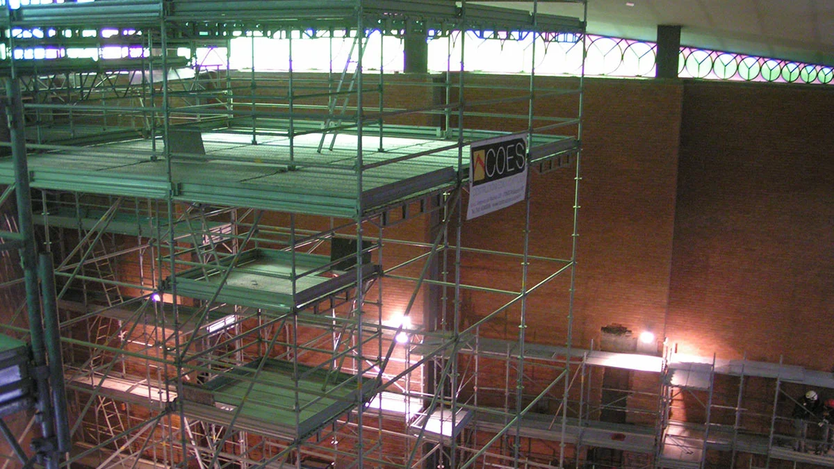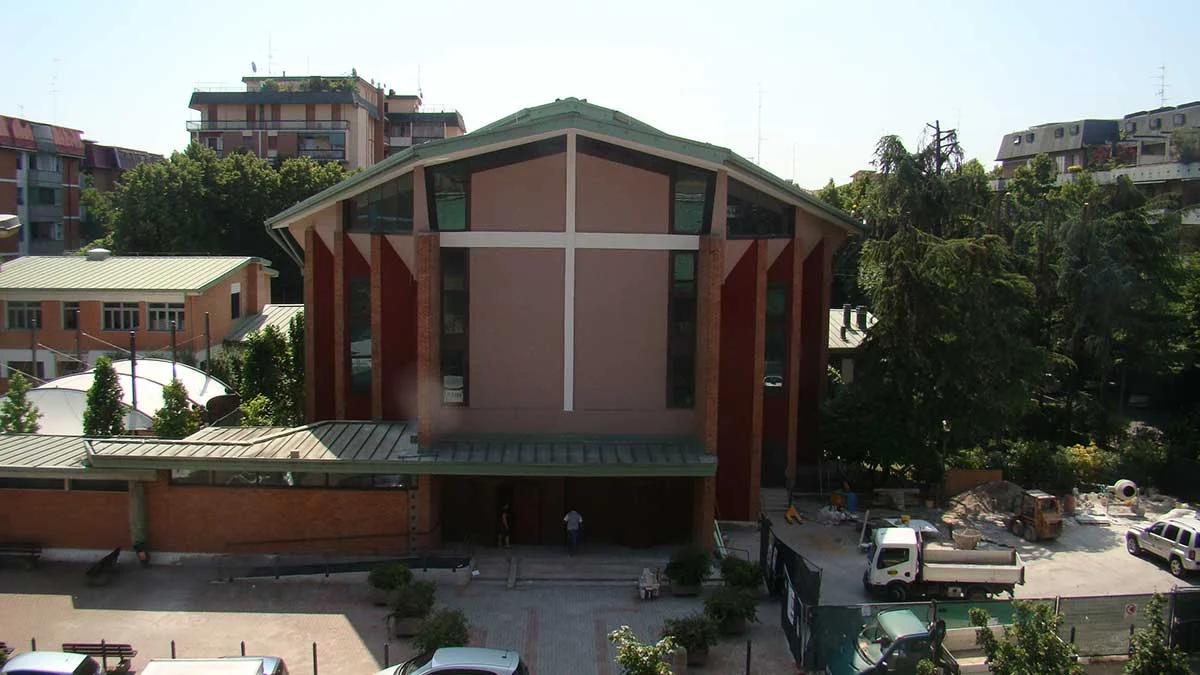La costruzione in oggetto vista la sua struttura in calcestruzzo molto alta e snella subì particolari danni durante il sisma che colpì la regione Emilia-Romagna nel 2013, la Chiesa fu resa inagibile e si rese necessario l’intervento di messa in sicurezza del controsoffitto in tavelloni della copertura mediante demolizione, l’adeguamento sismico della struttura, mediante la realizzazione di nuovi setti e associati ad elementi di carpenteria metallica e a “fasciature” in fibra di carbonio ed infine si esegui la mitigazione di evidentissimi ponti termini con la realizzazione di nuovi serramenti più performanti, contropareti in cartongesso integrate con materiali isolanti e nuovo controsoffitto anch’esso in cartongesso con materiale isolante.