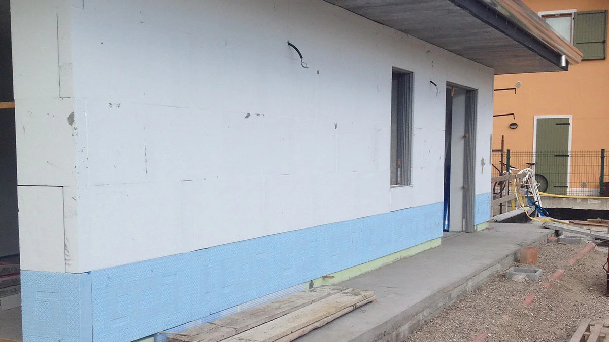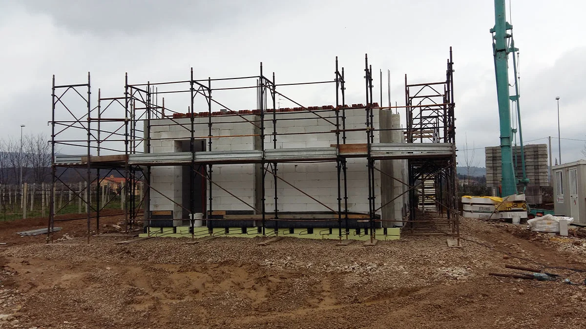 Il progetto poi prevedeva una realizzazione che consisteva nell’utilizzo di blocco in calcestruzzio cellulare autoclavato, ad alto potere isolante, igroscopico ed evita la formazione di muffe. Con questa metodologia in un unico componente si ha sia la muratura che la coibentazione, dovranno essere però utilizzati particolari accorgimenti nelle fasi di intonacatura.